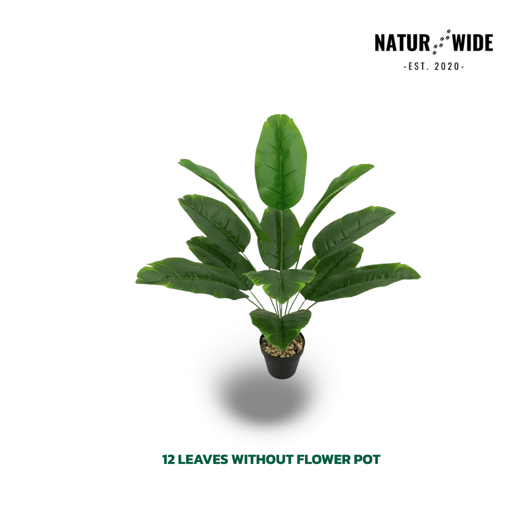 Bring fresh energy and a vacation vibe into your home with this Large Artificial Banana Palm Tree . With its generous leaves, it offers a full, vibrant appearance that is hard to distinguish from a real plant. The special feature is the "Real Touch" quality : The leaves feel fleshy and natural instead of looking like cheap plastic.