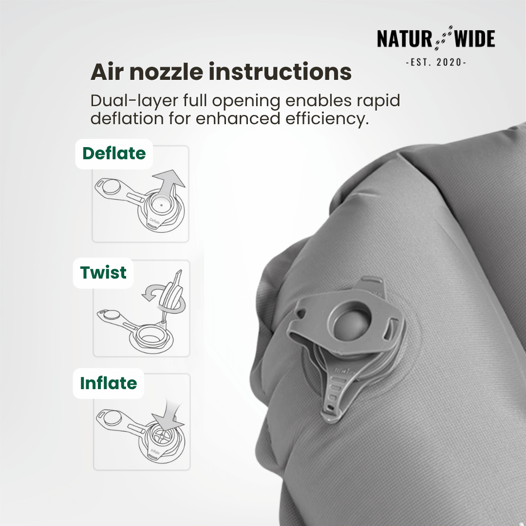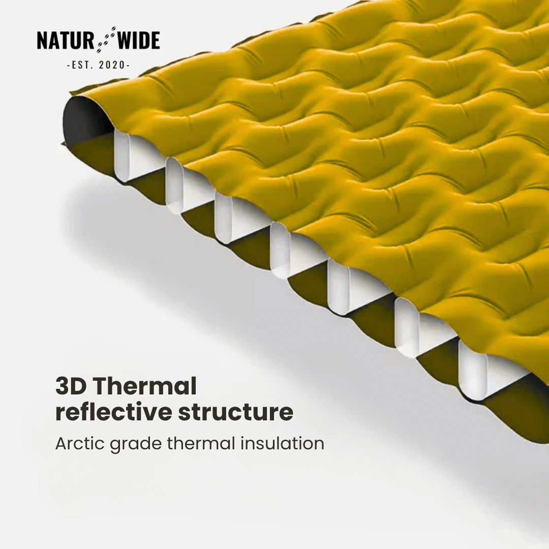 The NaturWide 7.6R Air Pad redefines outdoor sleeping comfort. Engineered with high-density 20D nylon and TPU lamination , this pad is built to withstand rugged terrain while keeping you perfectly warm and supported all year round.
