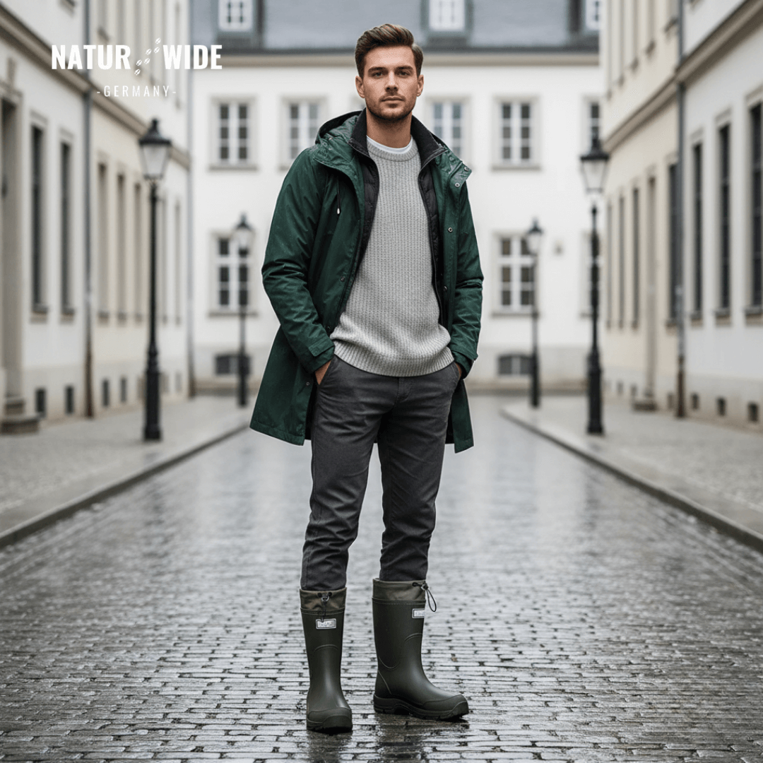 The waterproof NaturWide outdoor rubber boots for men & women are your reliable companion in rain, mud, or snow.